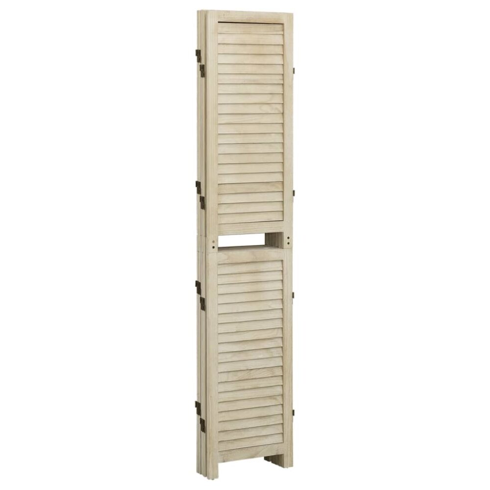 Consiga uma solução delicada e bonita de seccionar a sua divisão, com este biombo estilo vintage! Material de qualidade: a madeira de paulownia maciça é um bonito material natural. Trate a superfície com óleo, cera, verniz ou um acabamento vidrado para conseguir uma superfície mais forte e fácil de limpar. A madeira de paulownia é altamente resistente a insetos e ao apodrecimento.Uso versátil: esta tela de privacidade vertical pode ser utilizada como um artigo decorativo ou como uma divisória. É perfeito para colocar no quarto e criar uma área de vestir separada e privada ou para seccionar parte de uma divisão.Design de ventilação: a tela foi concebida com aberturas para permitir a entrada de luz e uma boa circulação de ar.Painéis dobráveis: podem ser dobrados para economizar espaço quando não estiverem a ser utilizados. Atenção:Para evitar que o produto se vire, deve utilizar o dispositivo de fixação na parede fornecido.