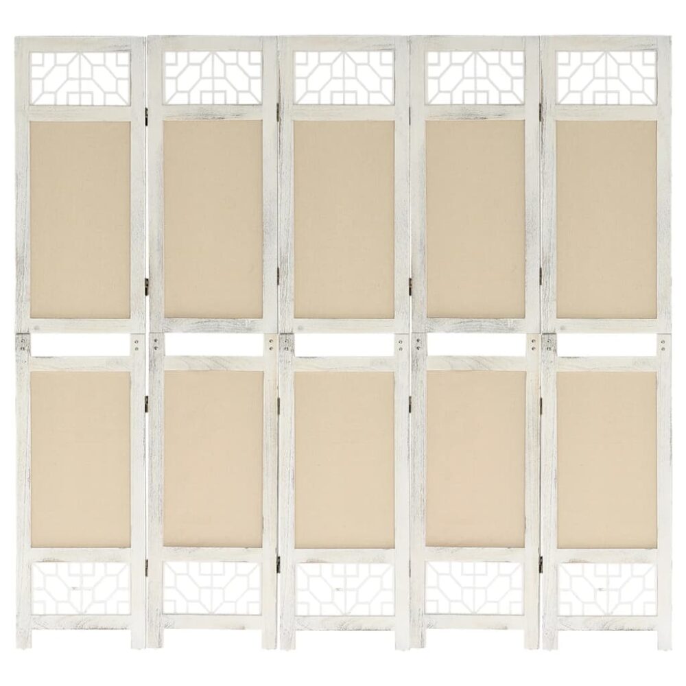 Este biombo/divisória protege a sua privacidade e pode também ser utilizado para decorar o quarto, sala de jantar, sala de estar, etc. Este biombo com 5 painéis independente e elegante pode ser usado como uma decoração ou como uma divisória. É perfeito para colocar no quarto e criar uma área de vestir separada e privada ou para seccionar parte de uma divisão. A divisória possui ainda uma construção em madeira de paulownia forte e foi revestida com um tecido durável. Também pode ser facilmente dobrada para economizar espaço quando não estiver a ser utilizada.