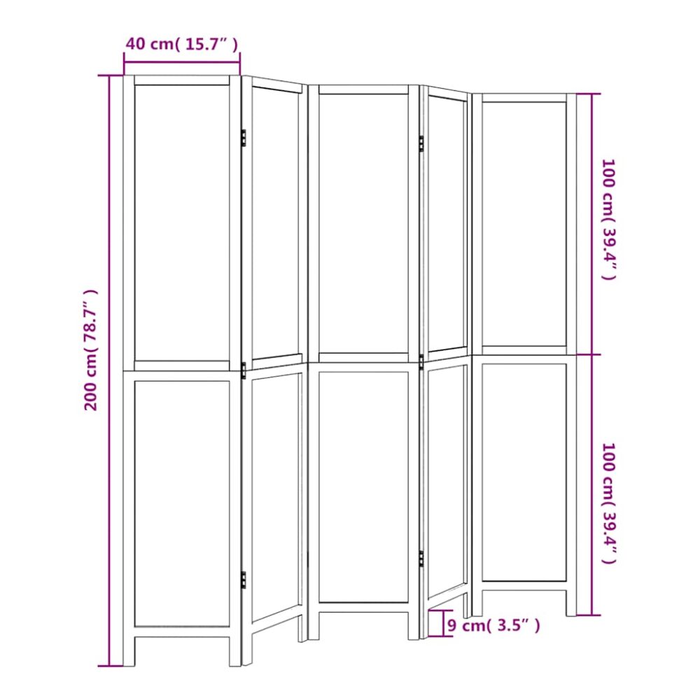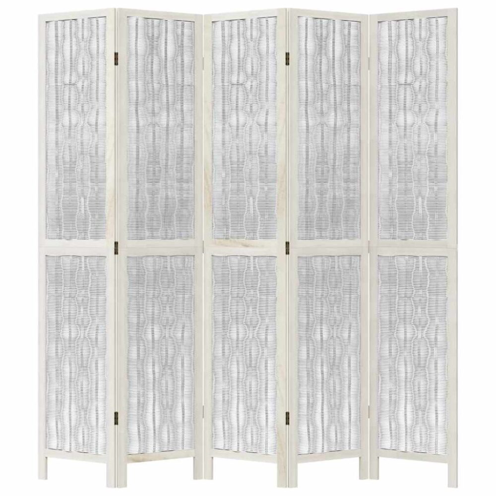 Biombo com 5 painéis madeira de paulownia maciça branco - PORTES GRÁTIS