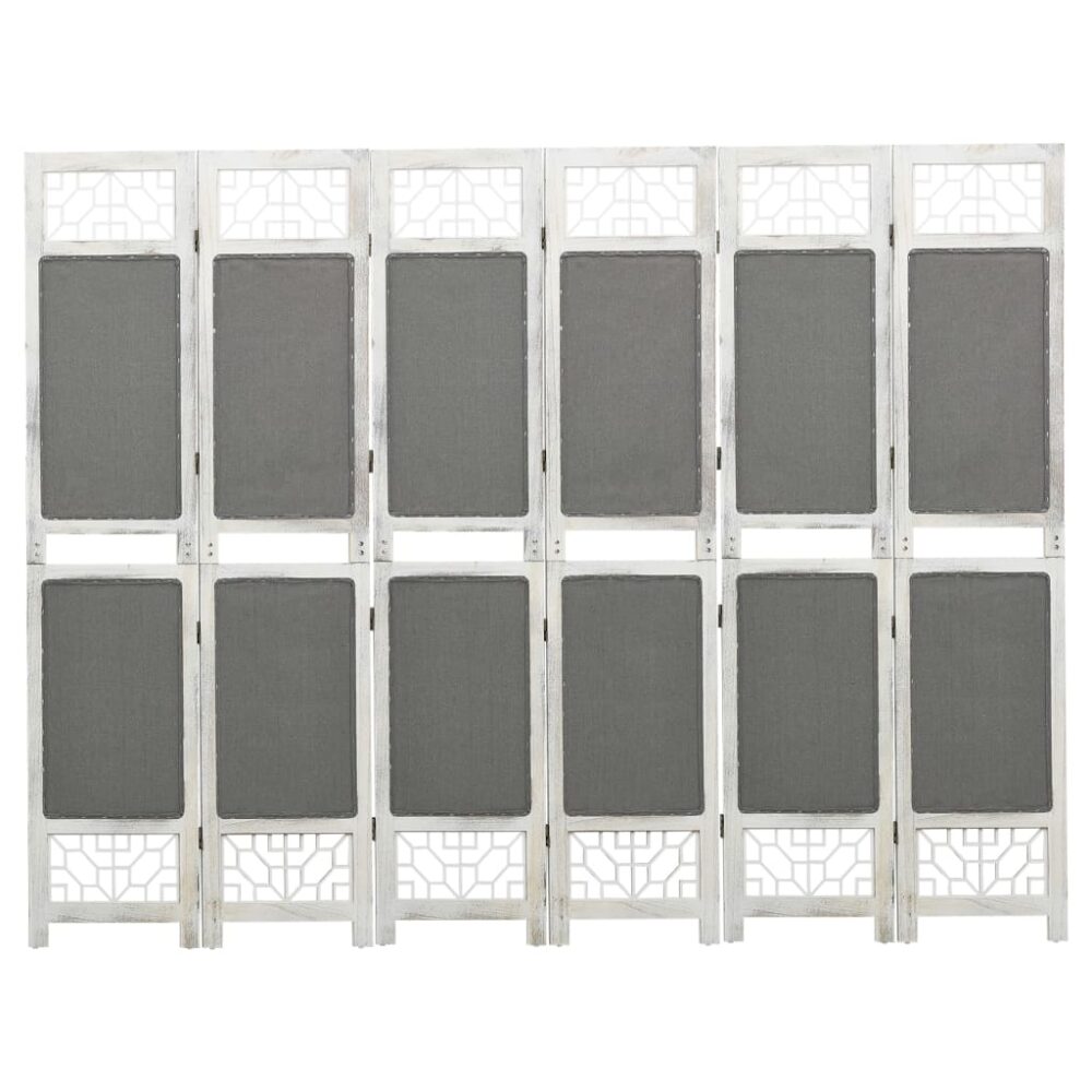 Biombo com 6 painéis 210x165 cm tecido cinzento - PORTES GRÁTIS