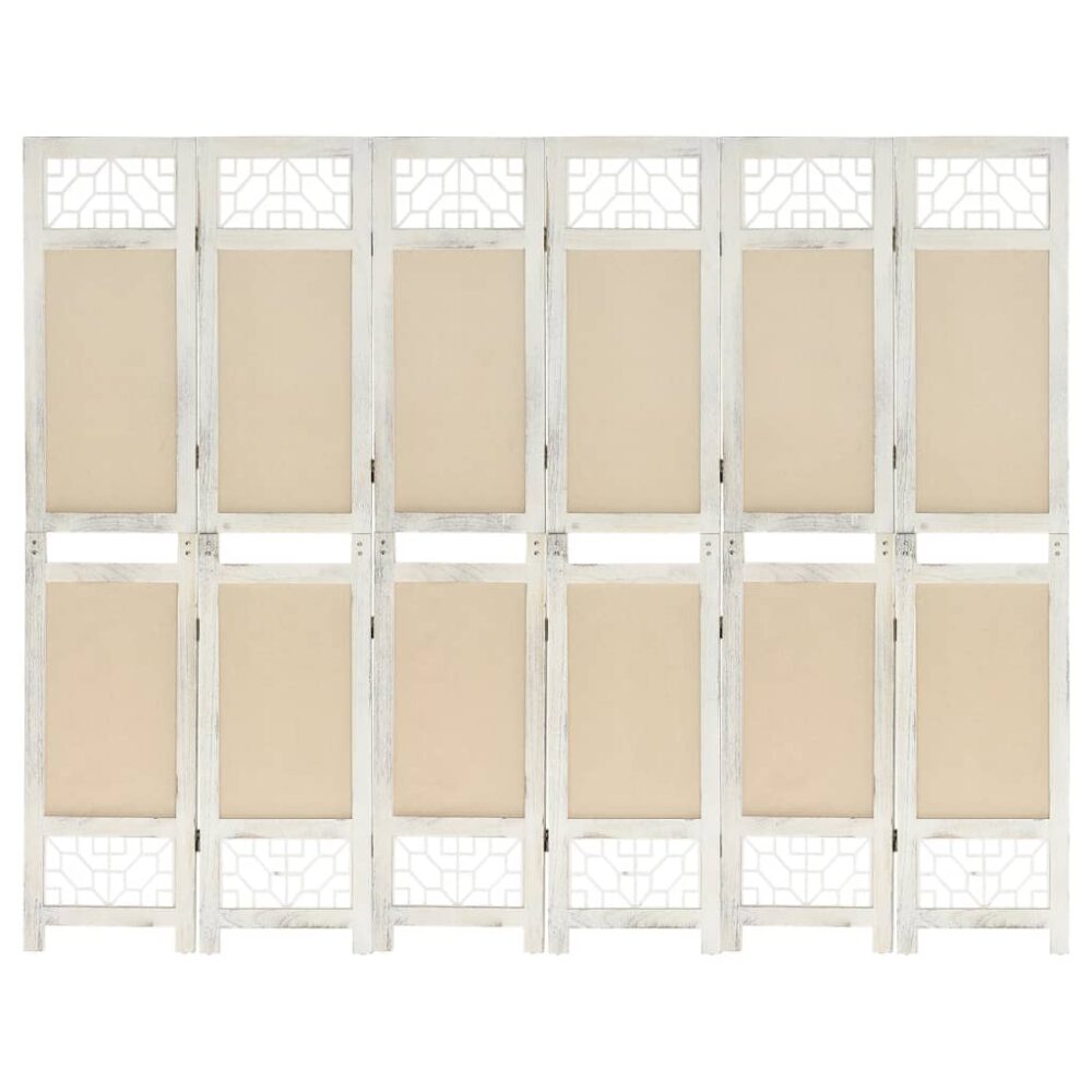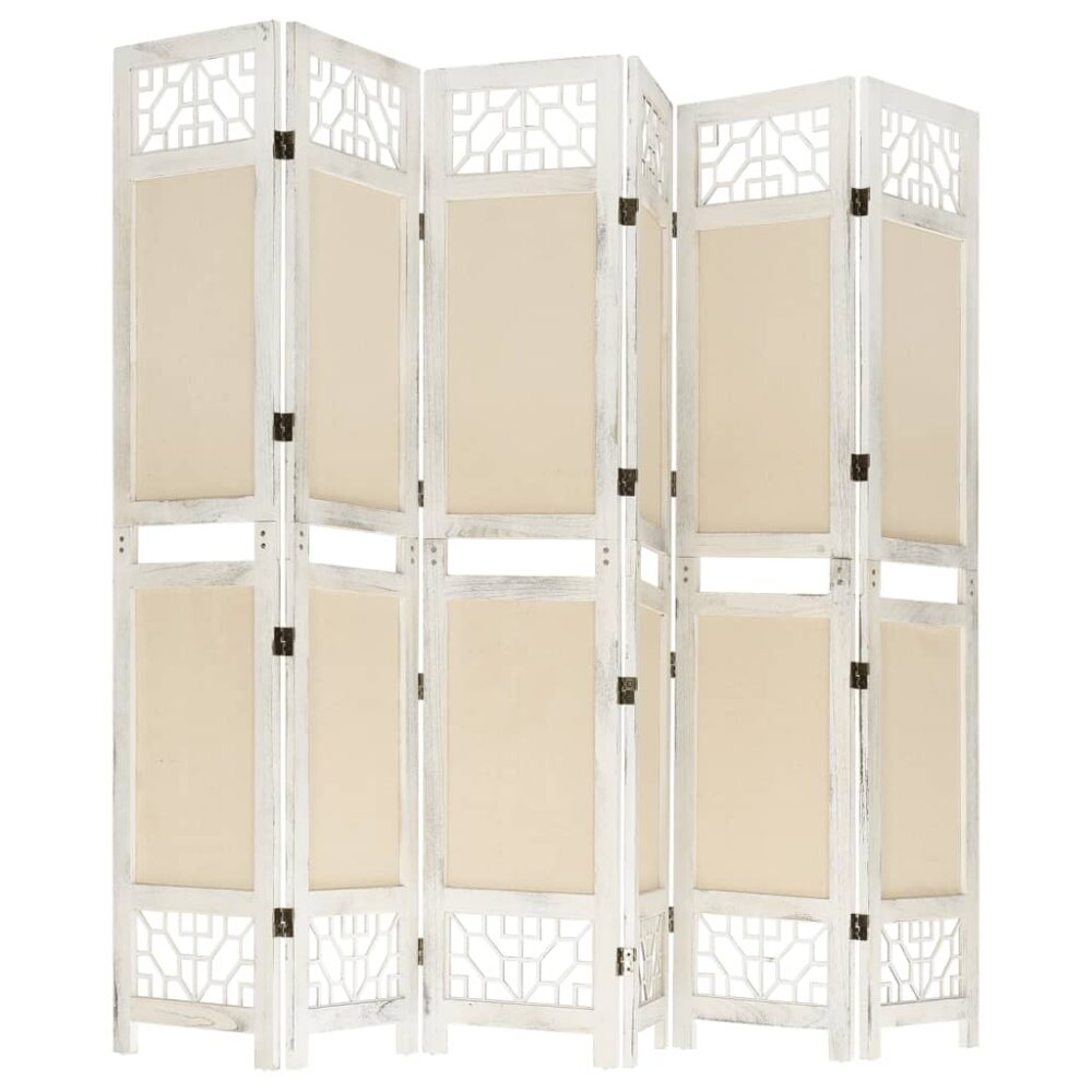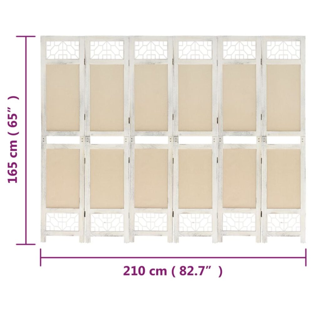 Biombo com 6 painéis 210x165 cm tecido cor creme - PORTES GRÁTIS