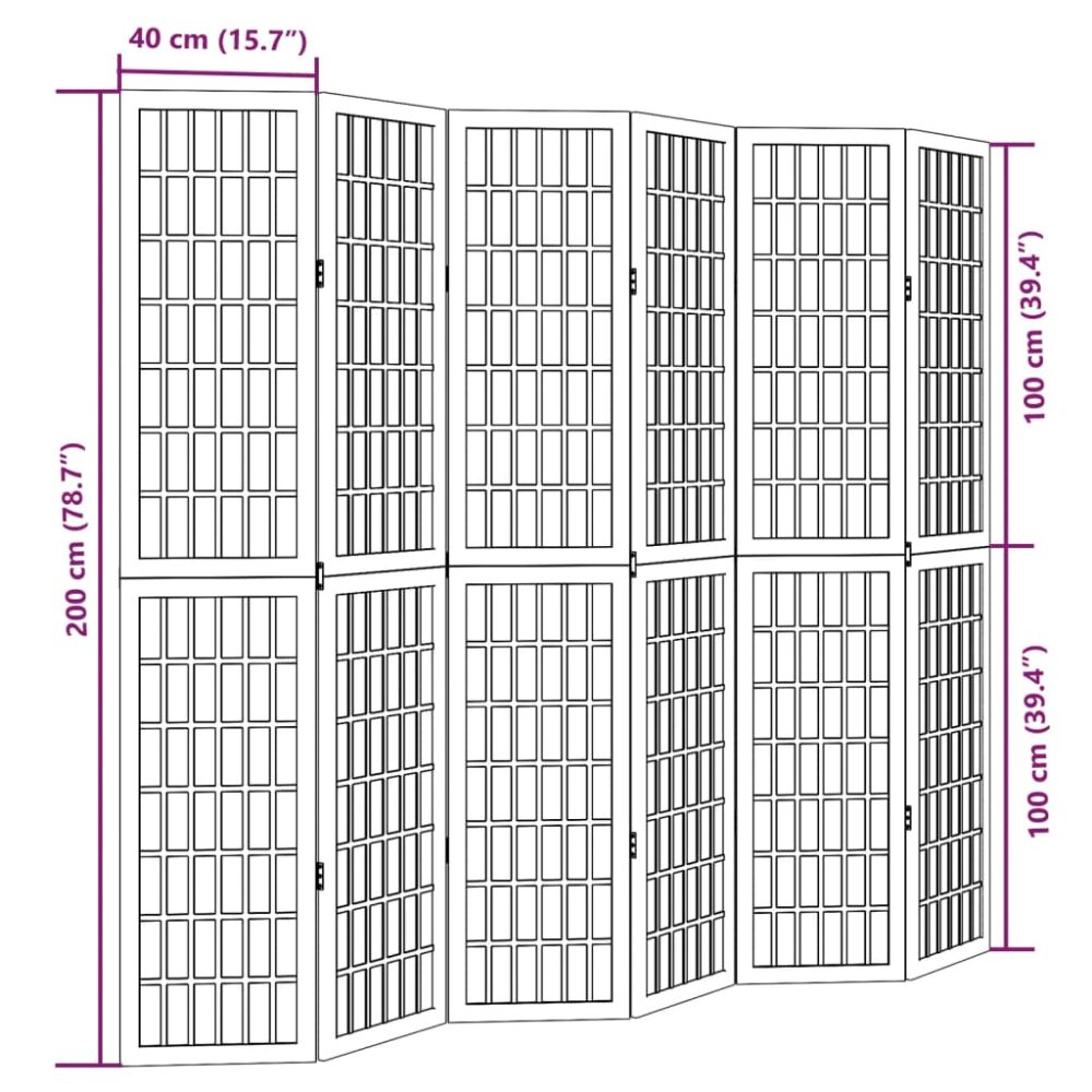 Biombo com 6 painéis madeira de paulownia maciça branco - PORTES GRÁTIS