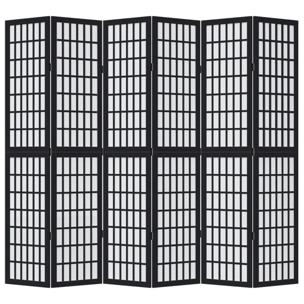 Biombo com 6 painéis madeira de paulownia maciça preto - PORTES GRÁTIS
