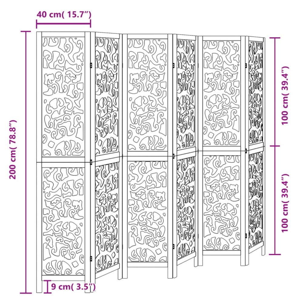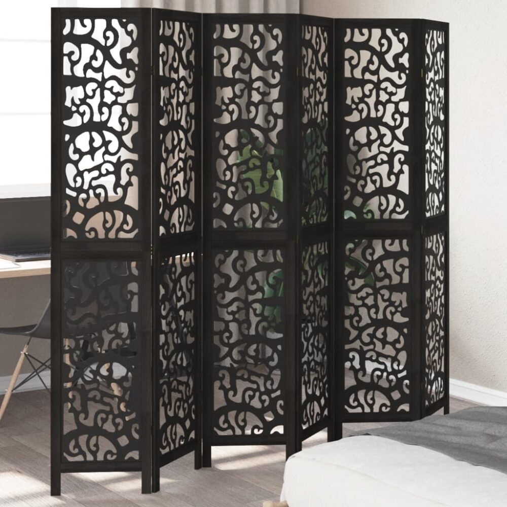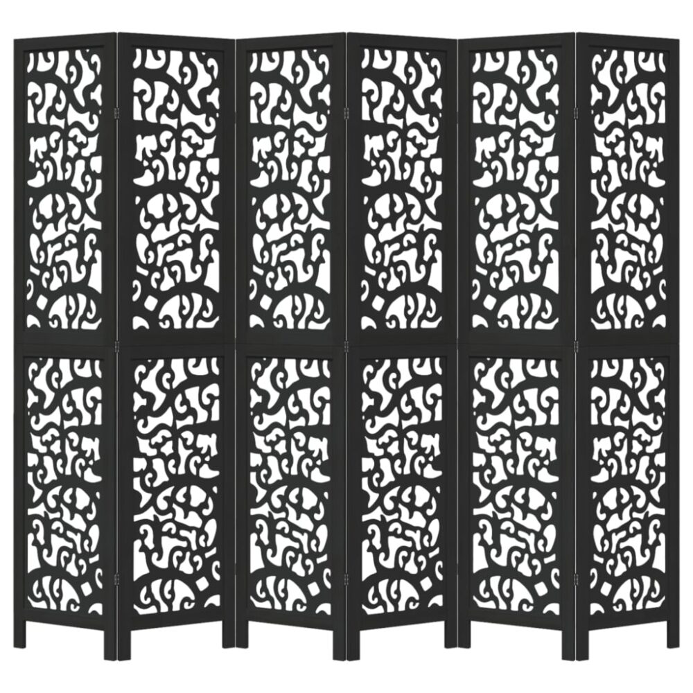 Biombo com 6 painéis madeira de paulownia maciça preto - PORTES GRÁTIS
