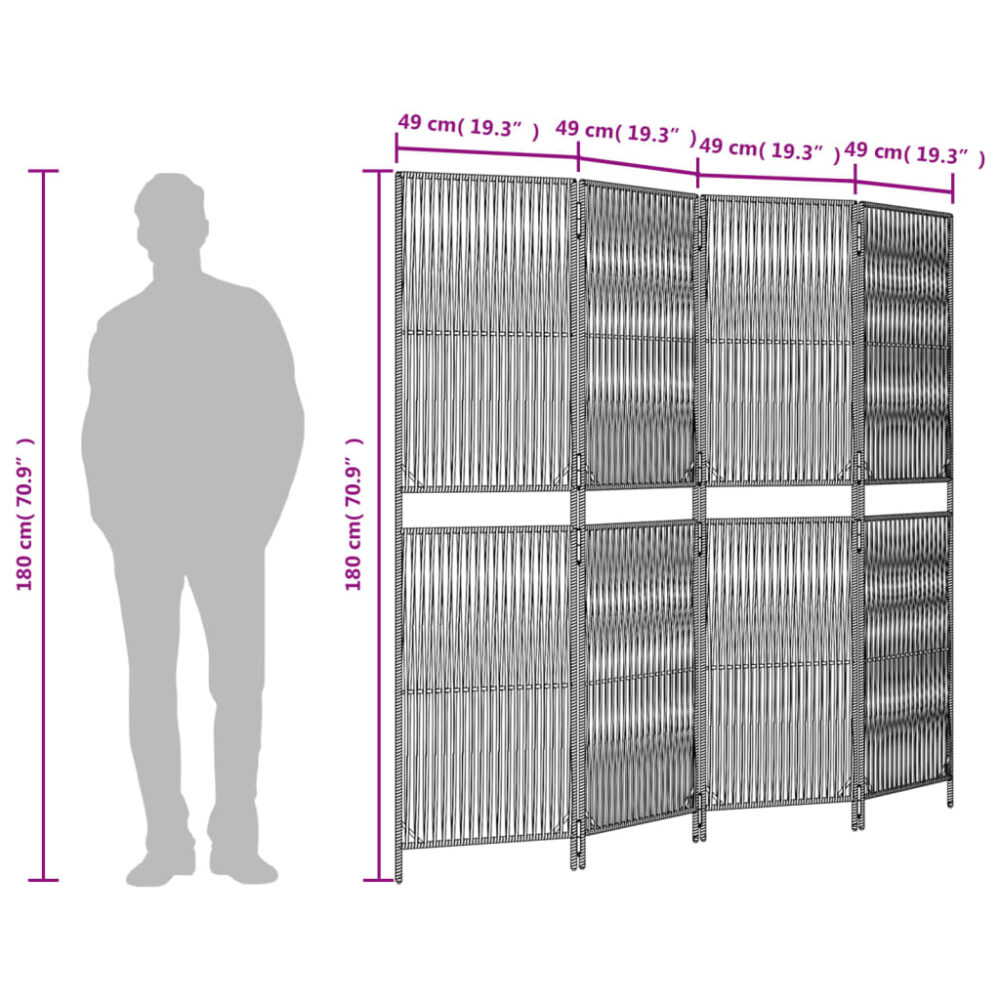 Biombo de divisão 4 painéis vime PE cinzento - PORTES GRÁTIS
