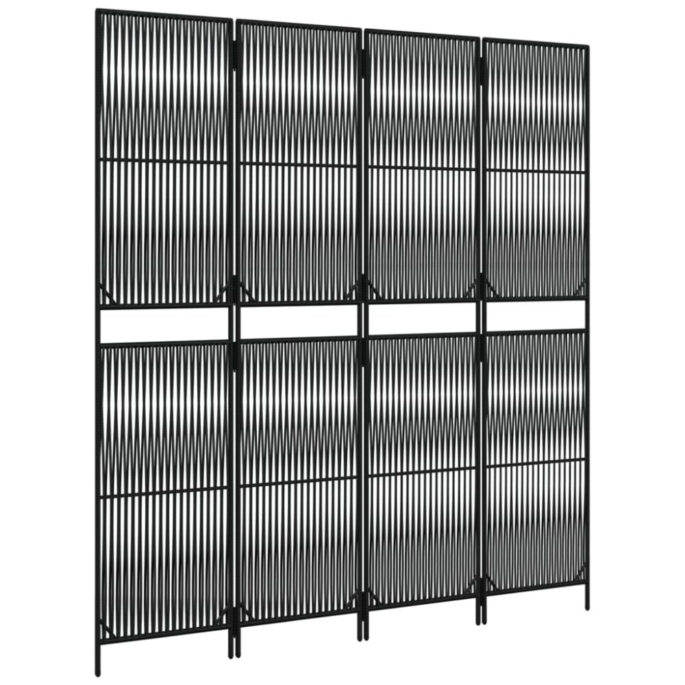 Biombo de divisão 4 painéis vime PE preto - PORTES GRÁTIS