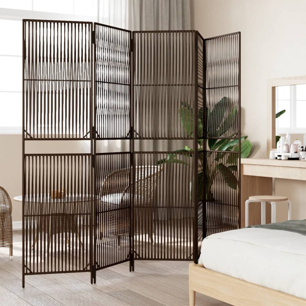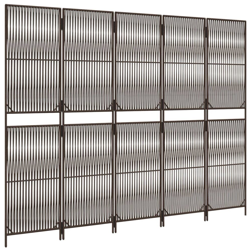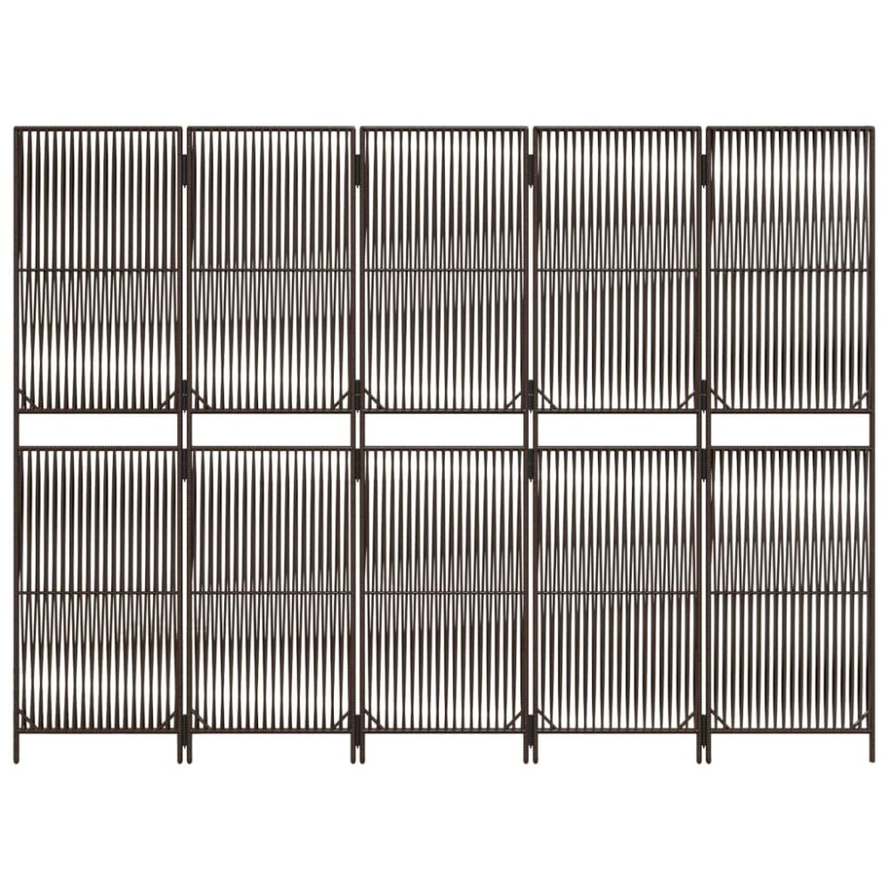 Biombo de divisão 5 painéis vime PE castanho - PORTES GRÁTIS