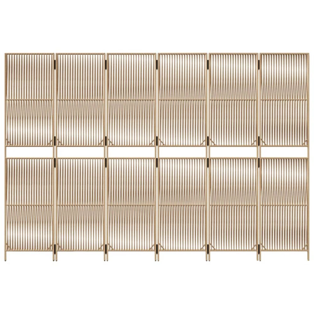 Biombo de divisão 6 painéis vime PE bege - PORTES GRÁTIS