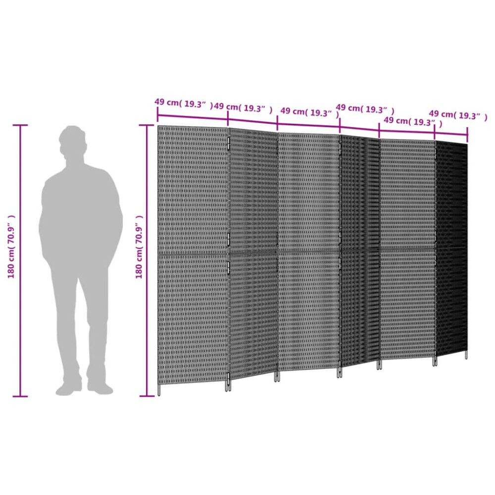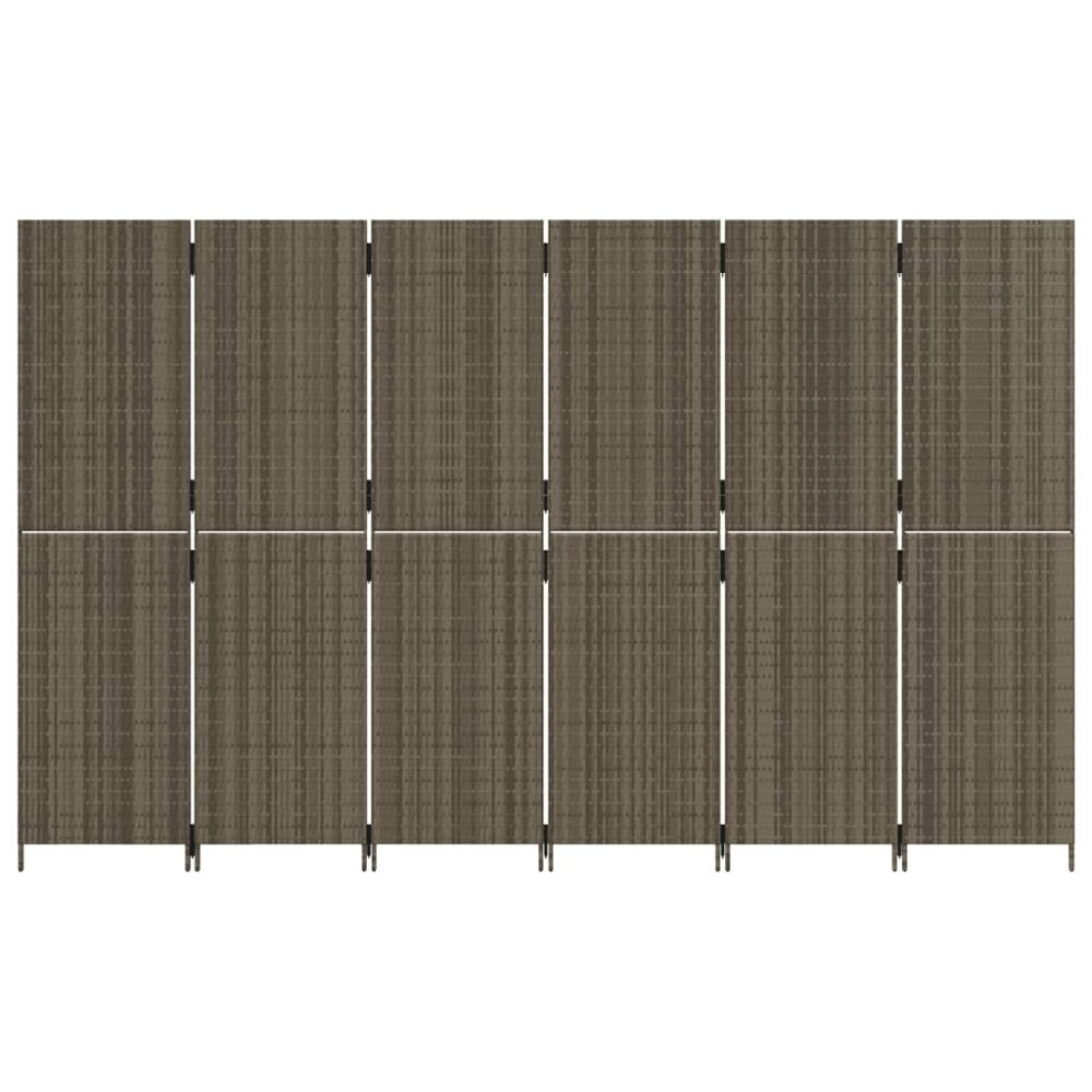 Biombo de divisão 6 painéis vime PE cinzento - PORTES GRÁTIS