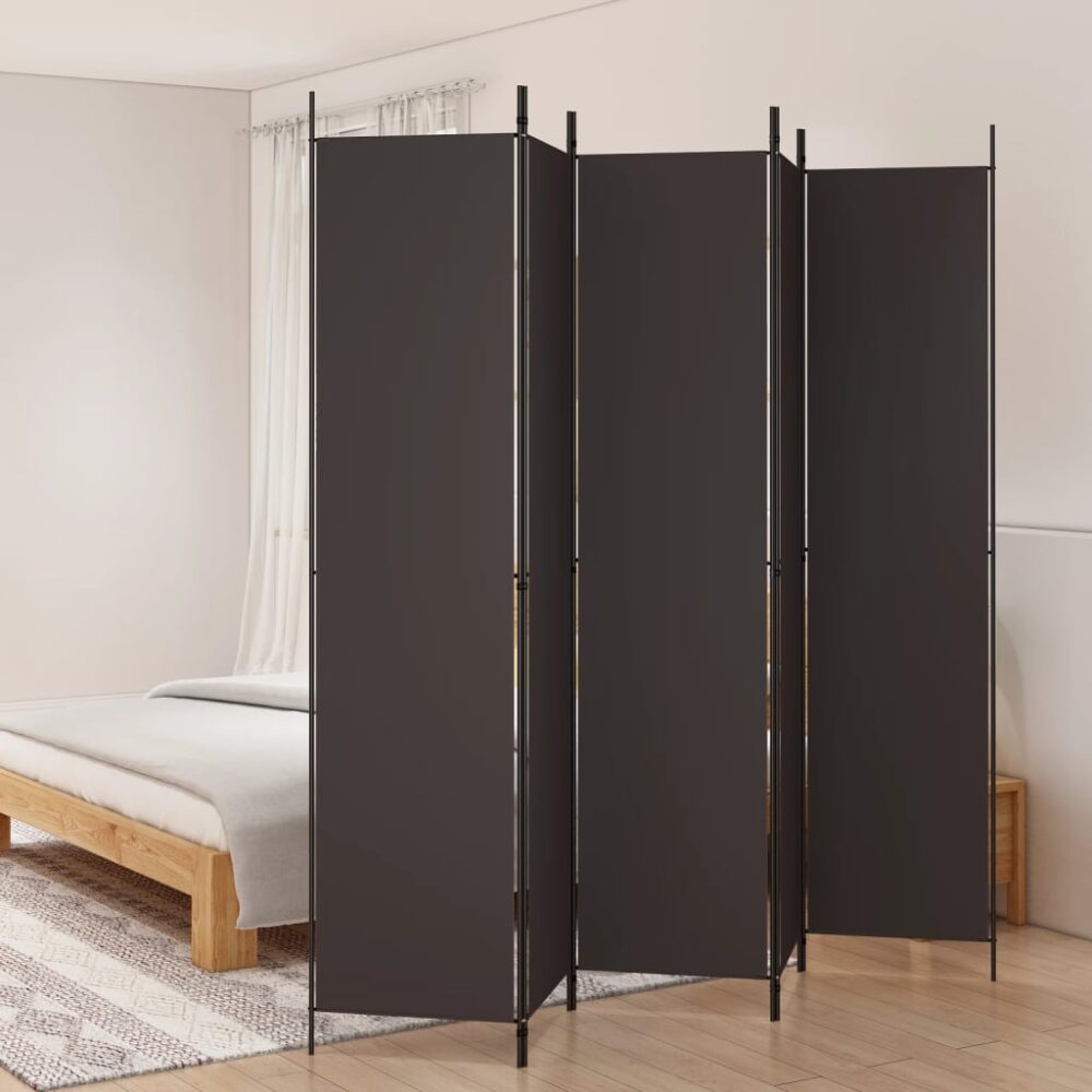 Biombo/divisória com 5 painéis 250x220 cm tecido castanho - PORTES GRÁTIS