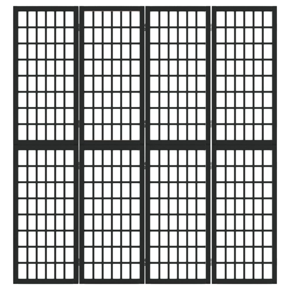 Biombo dobrável com 4 painéis estilo japonês 160x170 cm preto - PORTES GRÁTIS