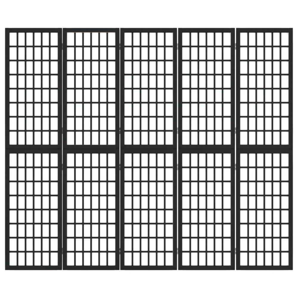 Biombo dobrável com 5 painéis estilo japonês 200x170 cm preto - PORTES GRÁTIS