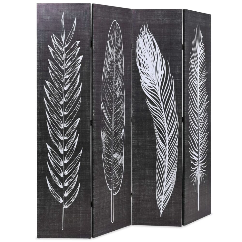 Este biombo mede 160 cm de largura por 170 cm de altura e é ideal para criar privacidade ou uma secção na sua divisão. Será um complemento prático e decorativo para o seu quarto, sala de estar ou escritório. O painel possui uma moldura em madeira maciça e está coberto por uma lona resistente, com uma sofisticada estampa de penas de ambos os lados. Adicionará um toque de classe a qualquer divisão. O biombo também pode ser facilmente dobrado para economizar espaço quando não estiver a ser utilizado.