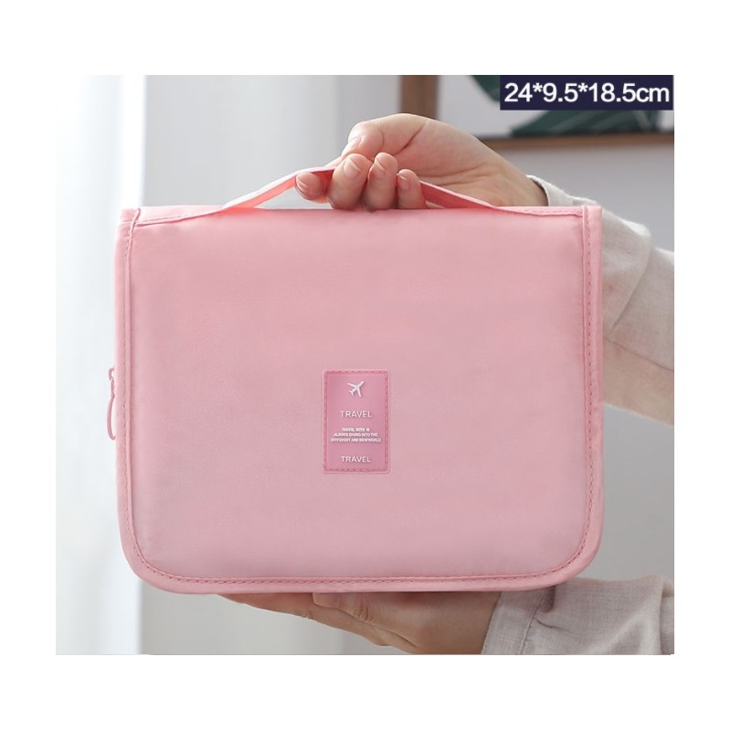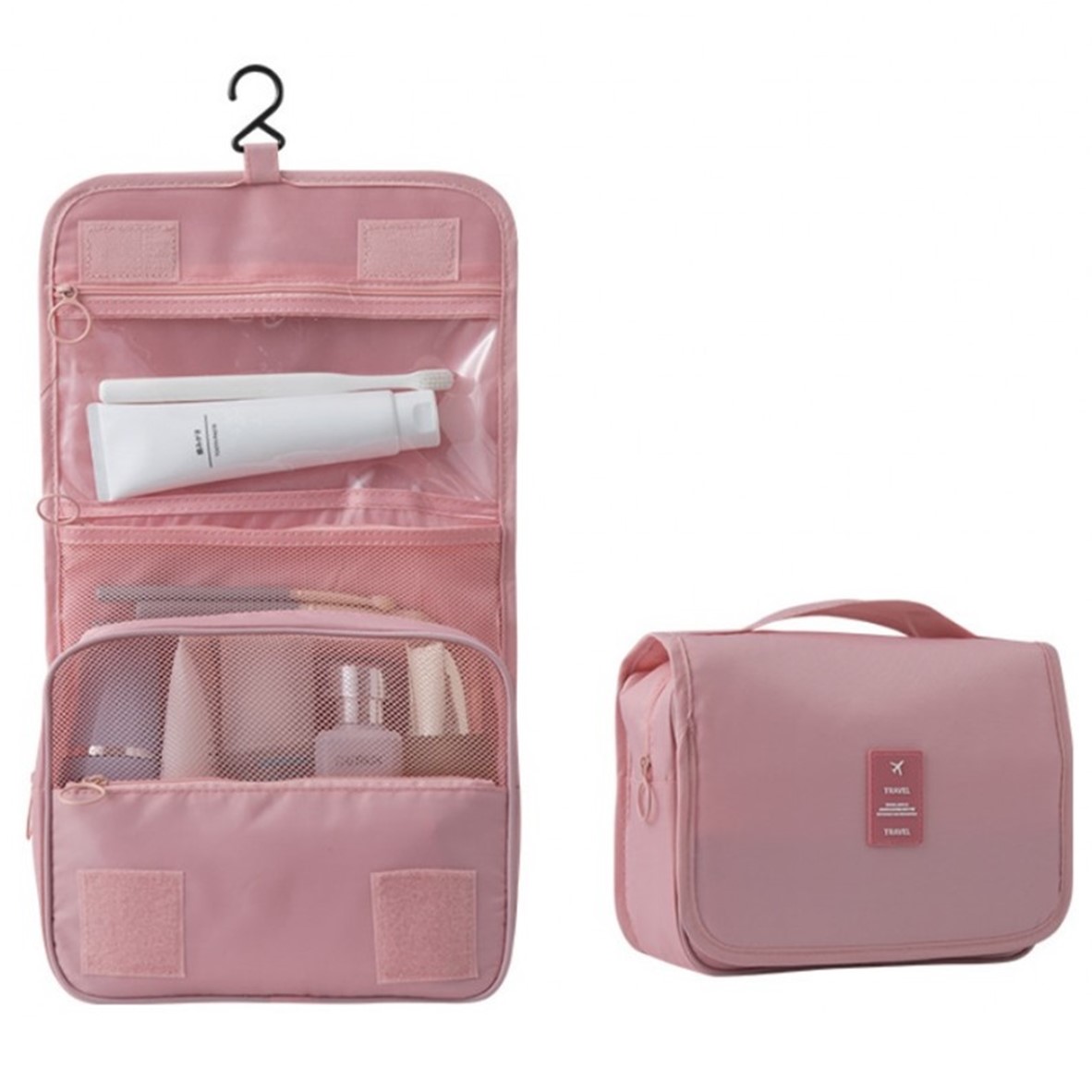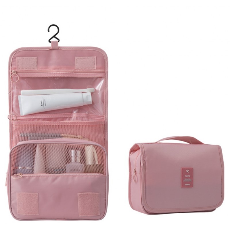 Uma linda bolsa de cosméticos dobrável para mulheres, disponível na cor rosa.
