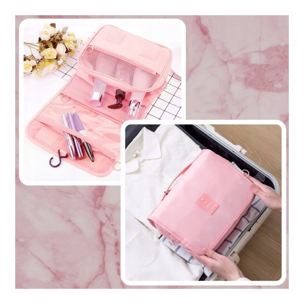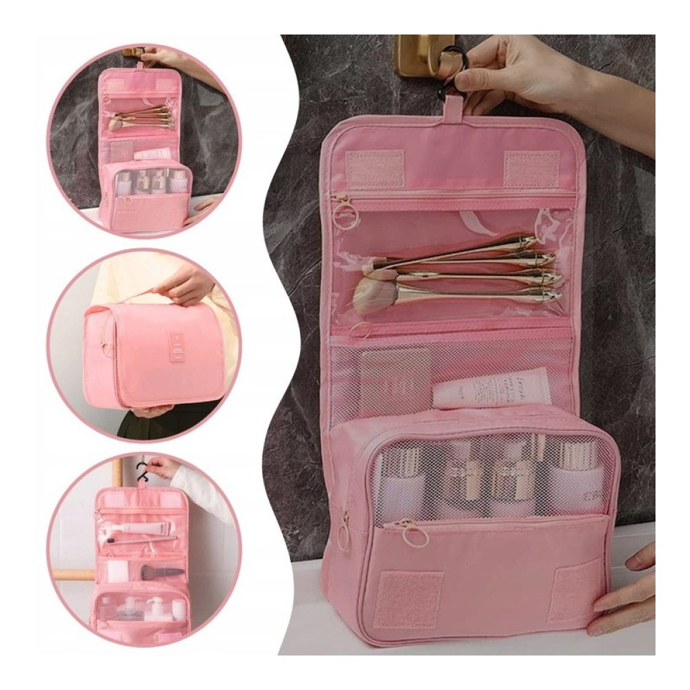 Uma linda bolsa de cosméticos dobrável para mulheres, disponível na cor rosa.