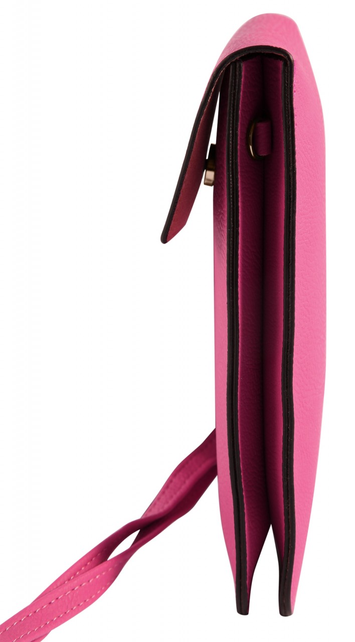 A bolsa de ombro para telemóvel é feita em pele sintética e está disponível em diversas cores. É ideal para muitas atividades de lazer e pode substituir o incômodo de carregar uma bolsa grande. A bolsa tiracolo não impressiona apenas pelo seu design minimalista, mas também pela prática opção de armazenamento de todos os itens importantes. Está dividida em dois compartimentos que podem ser facilmente abertos e fechados através de um botão. O tamanho da bolsa de ombro para telemóvel é de 18,5 cm de comprimento, 12 cm de largura e 0,8 cm de espessura quando vazia. A alça também é feita em pele sintética e tem um comprimento máximo de 125 cm. Também é ajustável e removível. Esta bolsa além de ter um bom visual, é uma companheira super prática em diversas situações do dia a dia.