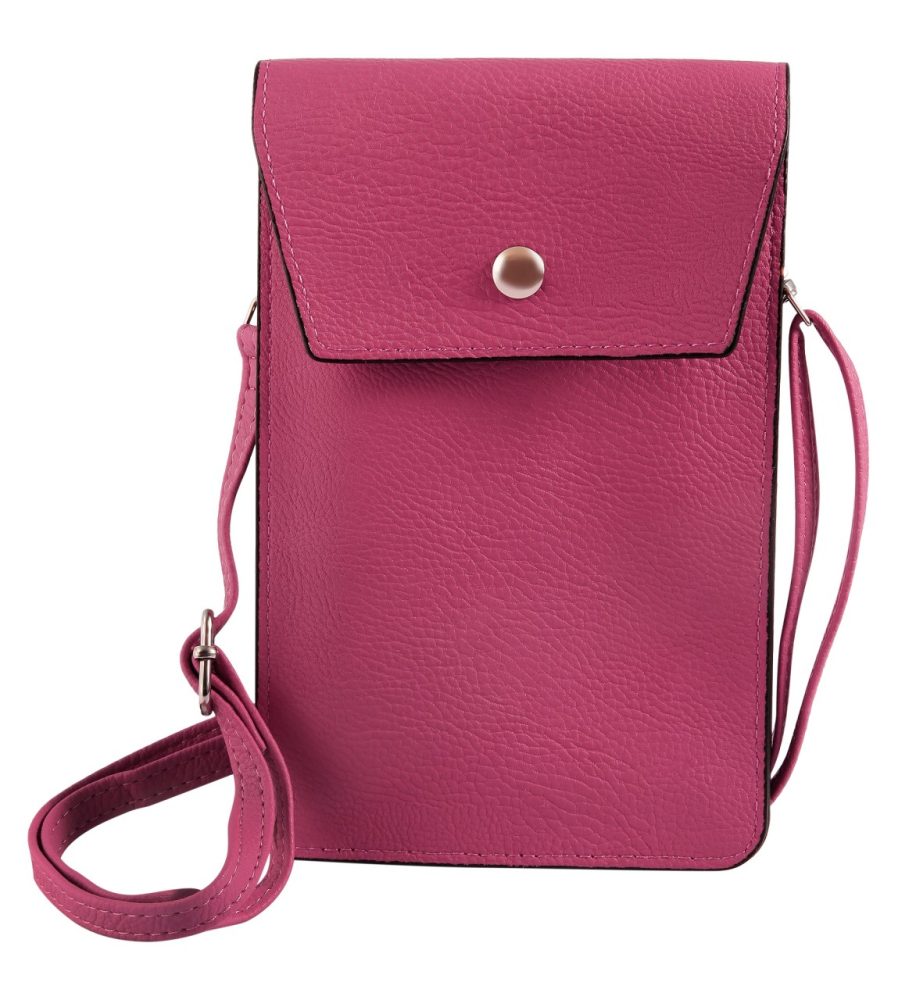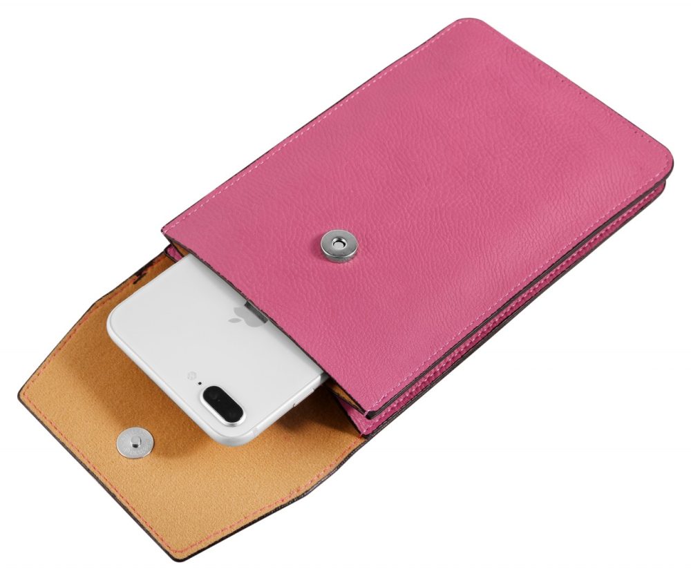 A bolsa de ombro para telemóvel é feita em pele sintética e está disponível em diversas cores. É ideal para muitas atividades de lazer e pode substituir o incômodo de carregar uma bolsa grande. A bolsa tiracolo não impressiona apenas pelo seu design minimalista, mas também pela prática opção de armazenamento de todos os itens importantes. Está dividida em dois compartimentos que podem ser facilmente abertos e fechados através de um botão. O tamanho da bolsa de ombro para telemóvel é de 18,5 cm de comprimento, 12 cm de largura e 0,8 cm de espessura quando vazia. A alça também é feita em pele sintética e tem um comprimento máximo de 125 cm. Também é ajustável e removível. Esta bolsa além de ter um bom visual, é uma companheira super prática em diversas situações do dia a dia.