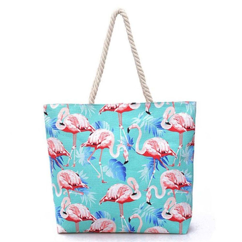 Bolsa de Praia Flamingos com Fecho e Bolso Interior TP04WZ4