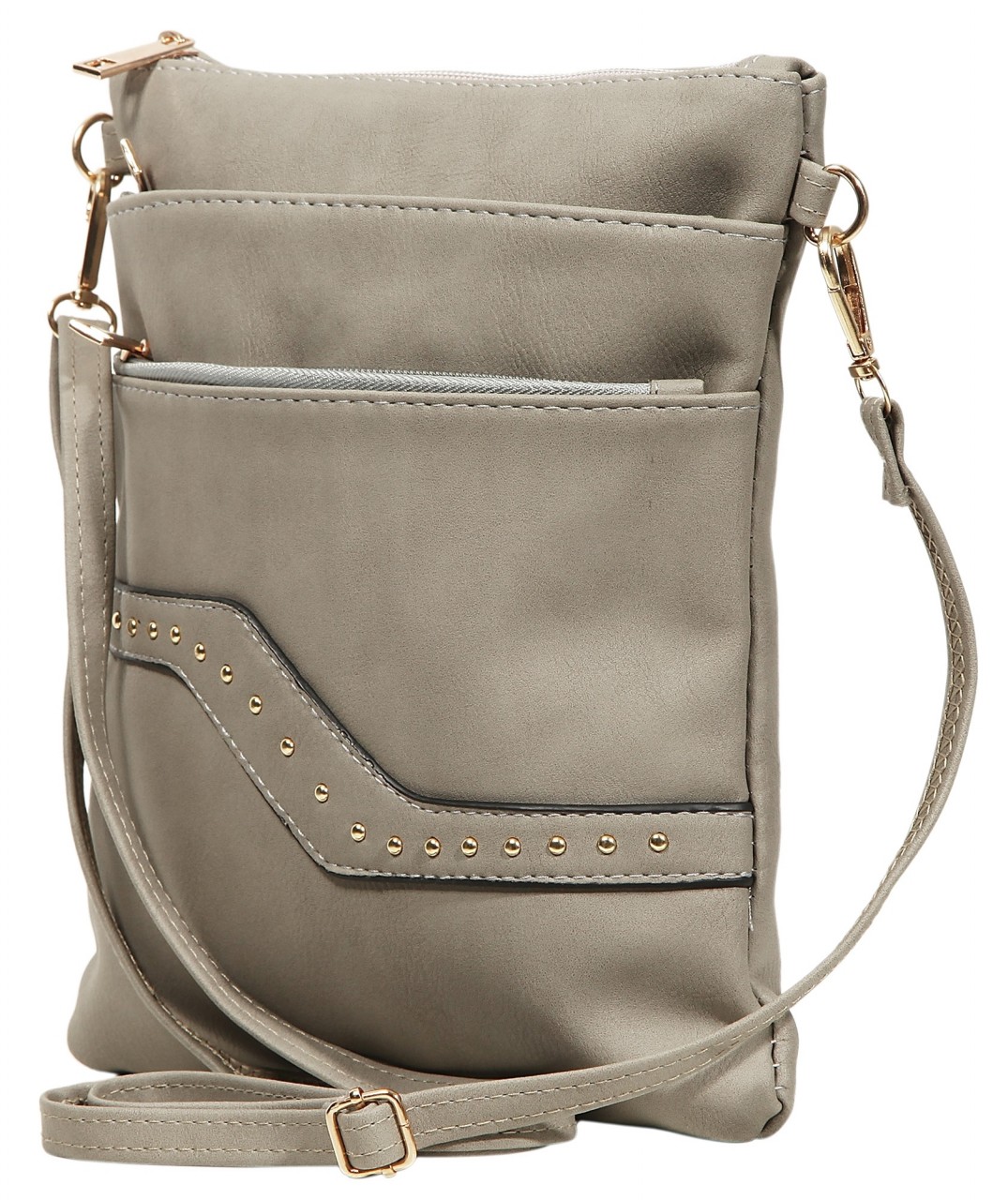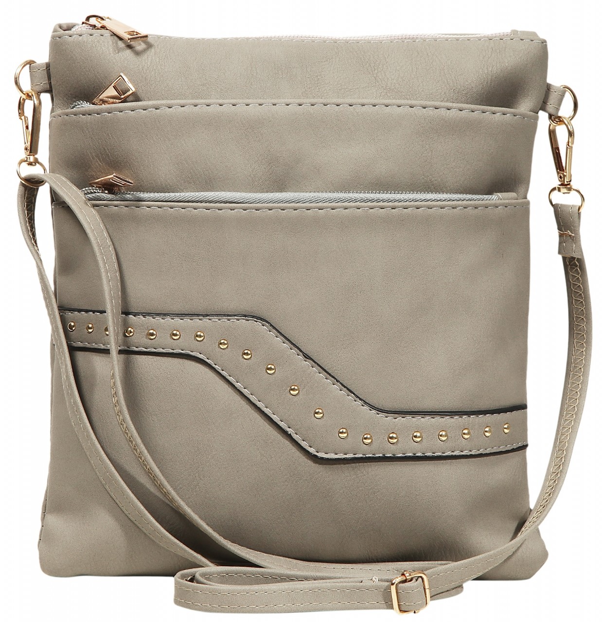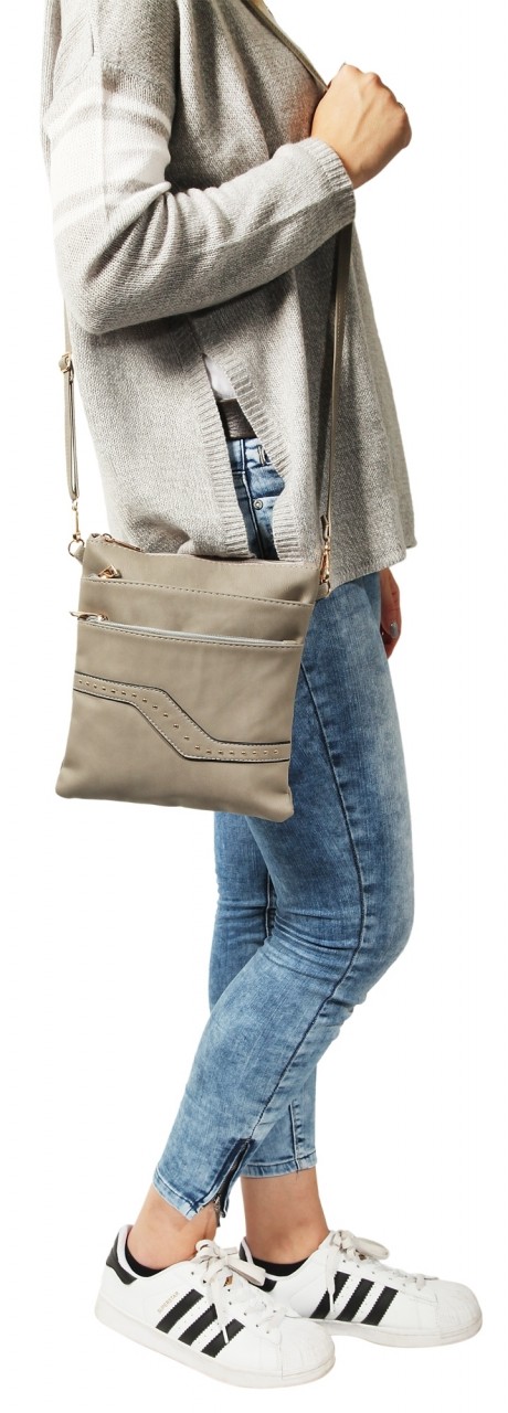A moderna bolsa tiracolo é confecionada em pele sintética robusta e impressiona pelo acabamento estruturado e pelos numerosos rebites de metal que decoram a superfície da bolsa. Possui também uma alça de transporte longa e removível que pode ser estendida até um comprimento máximo de aproximadamente 150 cm. Os dois compartimentos externos, bem como o compartimento traseiro, podem ser operados com fecho de correr. A bolsa também inclui um grande compartimento interno, que também é fechado com fecho. A bolsa estilosa é versátil e moderna e pode ser usada em muitas ocasiões. Além disso, não é apenas o design que impressiona, mas também a capacidade de armazenar todos os itens importantes.