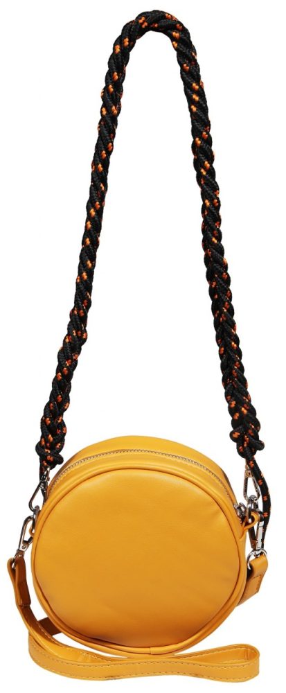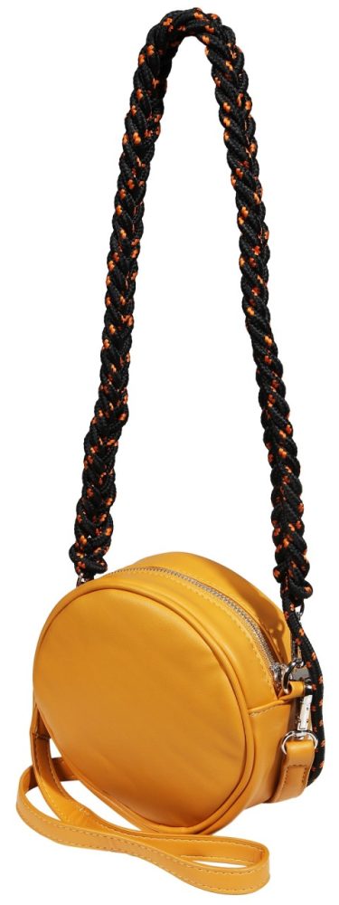 Bolsa feita em pele sintética. Dimensões: 15 cm de comprimento, 5 cm de largura e 15 cm de altura.