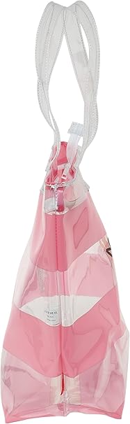 Fabricada em PVC resistente e impermeável, é ideal para ambientes com água ou areia, ajudando a proteger os seus pertences e facilitando a limpeza após o uso. O design transparente com detalhes em rosa permite visualizar facilmente o conteúdo da bolsa, tornando a organização ainda mais simples.
