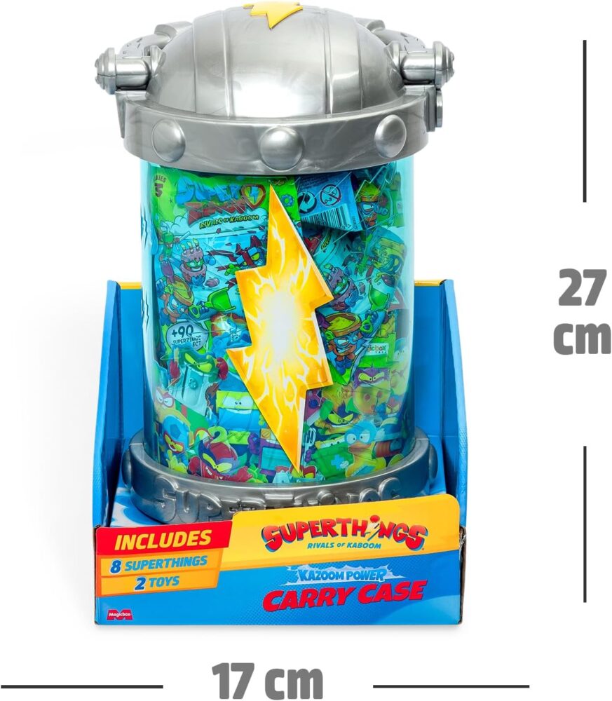 - Leve-se os seus super-heróis onde quiser! – Este recipiente em forma de cápsula Kazoom é ideal para todos os colecionadores que desejam guardar e transportar a sua coleção Superthings