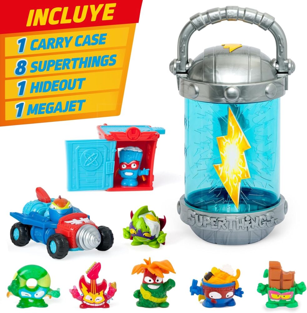 - Embalado com as suas superthings e acessórios favoritos: este recipiente vem com 8 figuras Superthings, assim como um Hideout e um MegaJet. Corte de energia Kazoom!