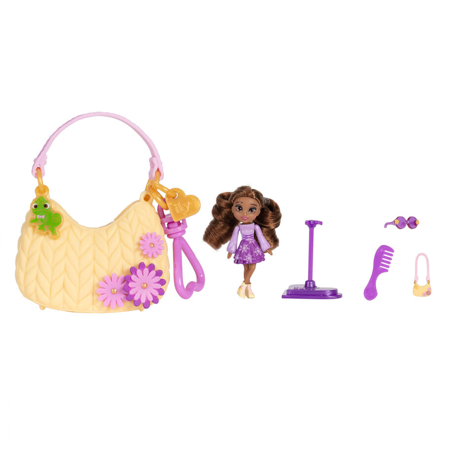 Este encantador conjunto de bonecas colecionáveis de 6 cm com bolsa e acessórios fará as delícias dos maiores fãs da Disney. A boneca cabe perfeitamente dentro da bolsa para que a possa levar consigo para onde quer que vá. Inclui também um pente, um suporte de exposição e um acessório adicional. As bonecas de 6 cm com mais de 3 pontos de articulação permitem-lhe recriar as suas cenas favoritas. Existem até 12 estilos diferentes. Envio aleatório.