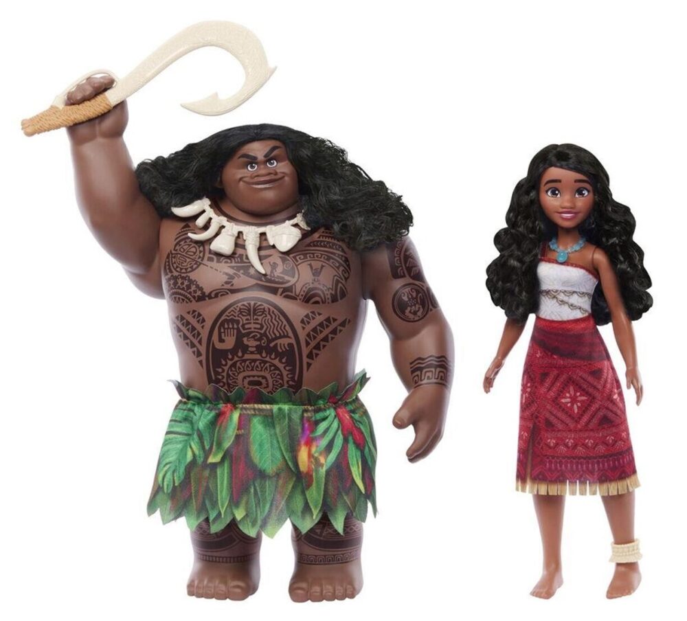 - Inclui: 1 boneca Moana com vestido e colar; 1 boneco Maui com acessórios