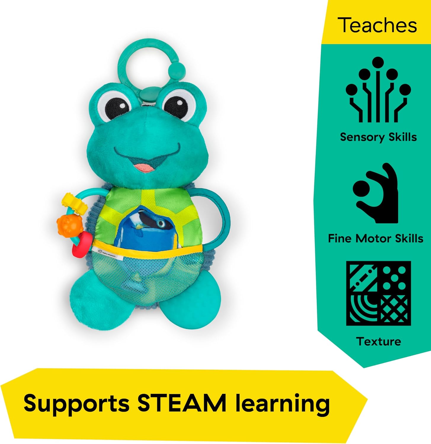 - Os seus 7 brinquedos de estimulação sensorial incluem um pino de contas, um peixinho crocante, pernas texturizadas e peluche suave. A concha de Neptune inclui texturas e cores de alto contraste para uma maior estimulação tátil e visual.