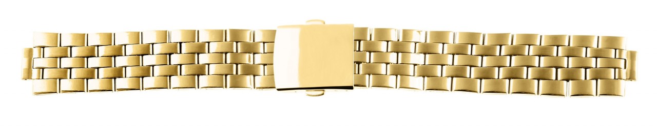 Bracelete para relógio Dourada em Aço Inoxidável, 22 mm com fecho de gancho em aço inoxidável.