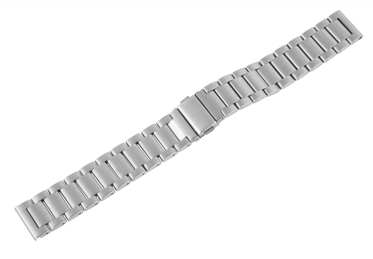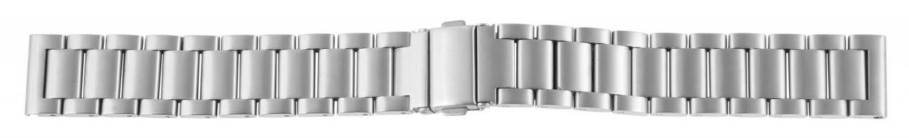 A bracelete de reposição do relógio prateada é feita de aço inoxidável e pode ser aberta e fechada usando um fecho dobrável de aço inoxidável prateado. A bracelete de reposição é composta por vários elementos que podem ser removidos com pouco esforço. Isto significa que a bracelete pode ser ajustada individualmente a cada pulso. O comprimento total da banda é de 17,5 cm. A pulseira de aço inoxidável está disponível em larguras de 18 mm, 20 mm, 22 mm e 24 mm. A alça é reta e, portanto, compatível com todos os relógios. Toda a superfície da bracelete é mate. Este tipo de tratamento de superfície faz com que a pulseira do relógio pareça simples, mas também elegante e, portanto, adapta-se perfeitamente a qualquer relógio.