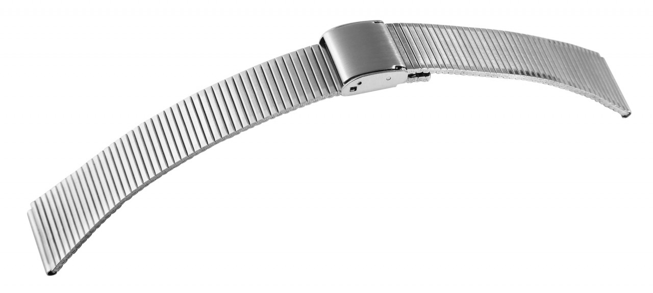 Bracelete de relógio com fecho de gancho em tom prateado de aço inoxidável 18 mm.