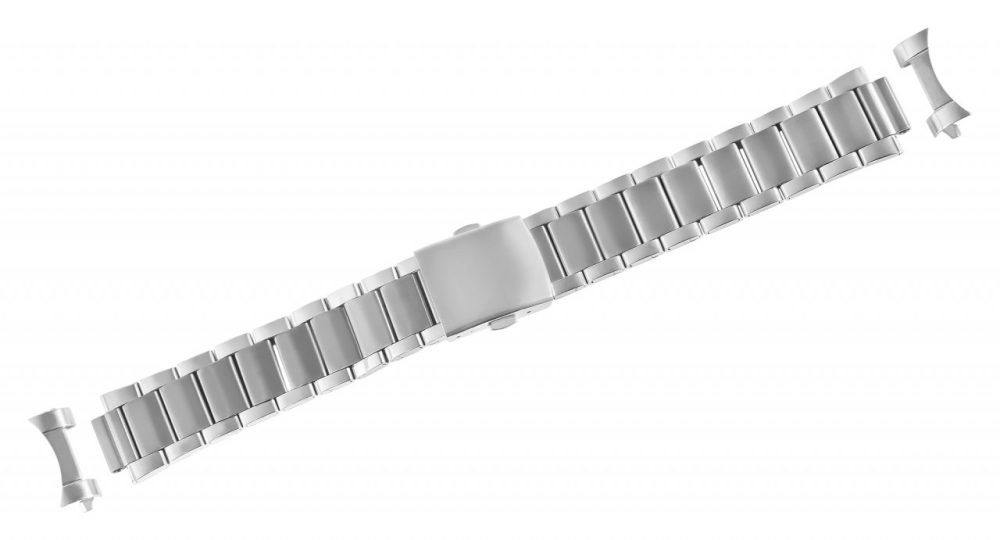 A bracelete de elos prateada para relógios em aço inoxidável, 20 mm com fecho dobrável em aço inoxidável.