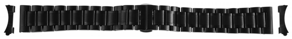 A bracelete preta do relógio é feita de aço inoxidável e pode ser aberta e fechada usando um fecho dobrável tipo borboleta em aço inoxidável preto. A bracelete de reposição é composta por vários elementos que podem ser removidos com pouco esforço. Isto significa que a pulseira pode ser ajustada individualmente a cada pulso. O comprimento total da bracelete de elos é de 17,5 cm. Está disponível em larguras de terminais de 18 mm, 20 mm, 22 mm e 24 mm. O pontapé inicial é substituível. É possível usar uma alça semicircular que se adapta perfeitamente à caixa, ou você pode usar uma alça reta que confere ao relógio um visual especial. Cada elemento individual consiste em cinco peças individuais, que fazem com que a bracelete de aço inoxidável pareça cinco fileiras quando montada. Com exceção da linha do meio, que é fosca, a bracelete de aço inoxidável é totalmente polida.