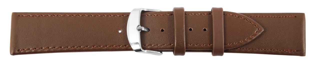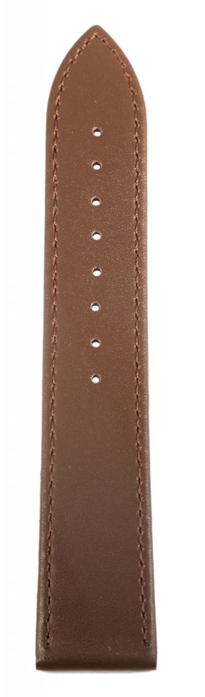 A bracelete castanha de pele genuína está disponível em larguras de 10 mm, 12 mm, 14 mm, 16 mm, 18 mm, 20 mm, 22 mm, 24 mm e 26 mm. Tem uma superfície lisa e acabamento com uma fina costura castanha. A espessura do material é de 3 mm. A bracelete de reposição tem um comprimento total entre 19 cm e 21,5 cm. O comprimento total depende da largura do terminal. A alça do fecho é 2 mm mais estreita que a largura da alça porque a faixa é estreita. Pode ser aberto e fechado com uma fivela prateada.