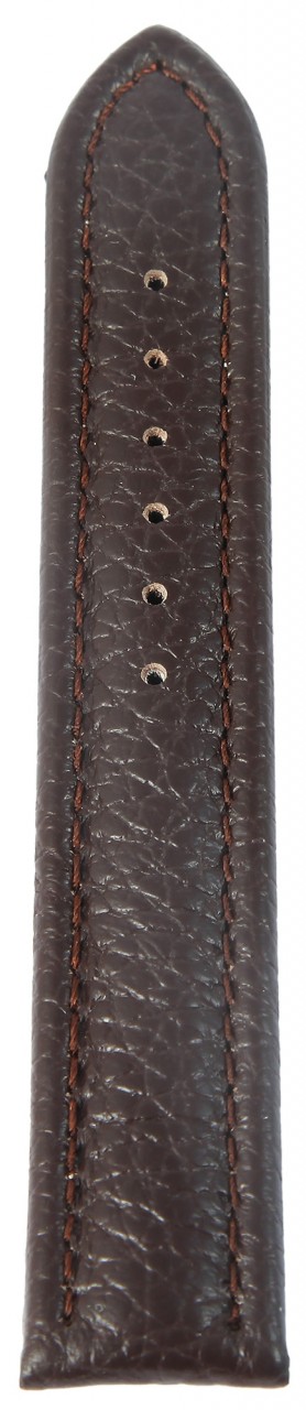 Bracelete clássica de reposição em pele genuína na cor castanha. A costura externa é na cor castanha. A parte superior da pulseira é acolchoada. A bracelete possui fecho dobrável em aço inoxidável. A parte do furo afunila até uma ponta no final.