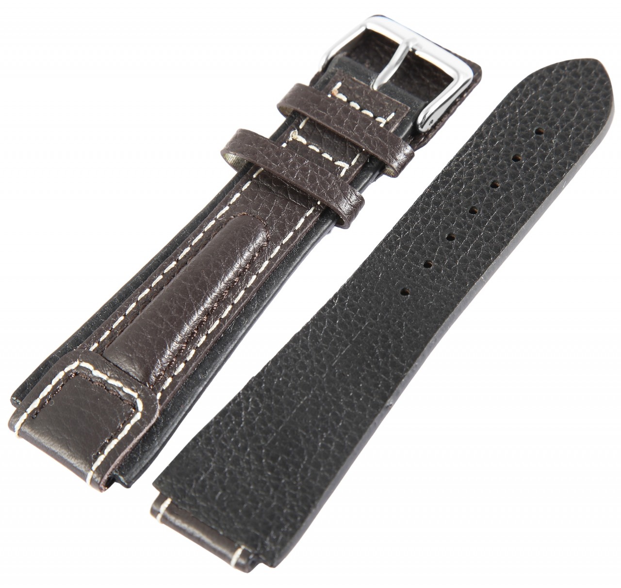 Bracelete de pele genuína, castanho escuro, costura branca, 24 mm.