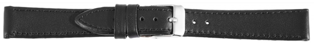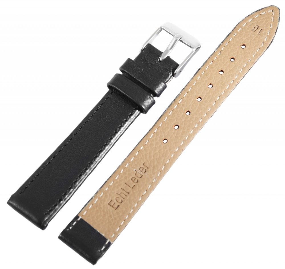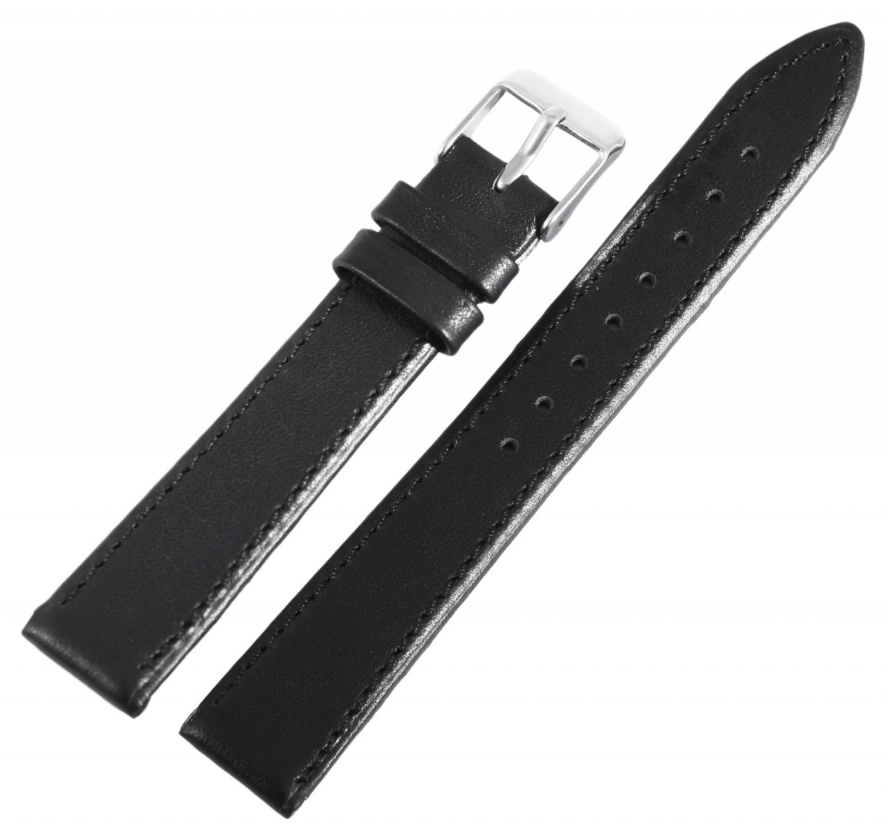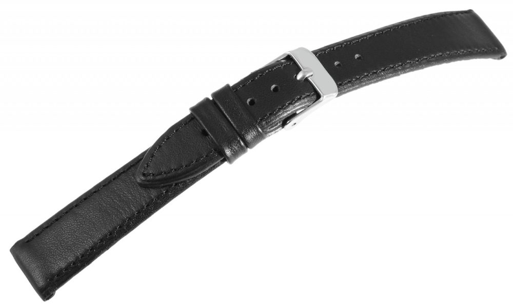 A bracelete para relógio Preta de pele genuína tem 22 mm com fivela de pino em aço inoxidável.