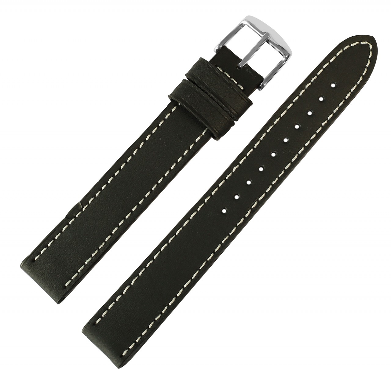 Pulseira básica de couro genuíno em preto decorada com costura branca. A pulseira tem uma fivela prateada e duas presilhas. A parte do furo afunila até uma ponta no final. As pulseiras são em XL e, portanto, também são adequadas para pulsos maiores