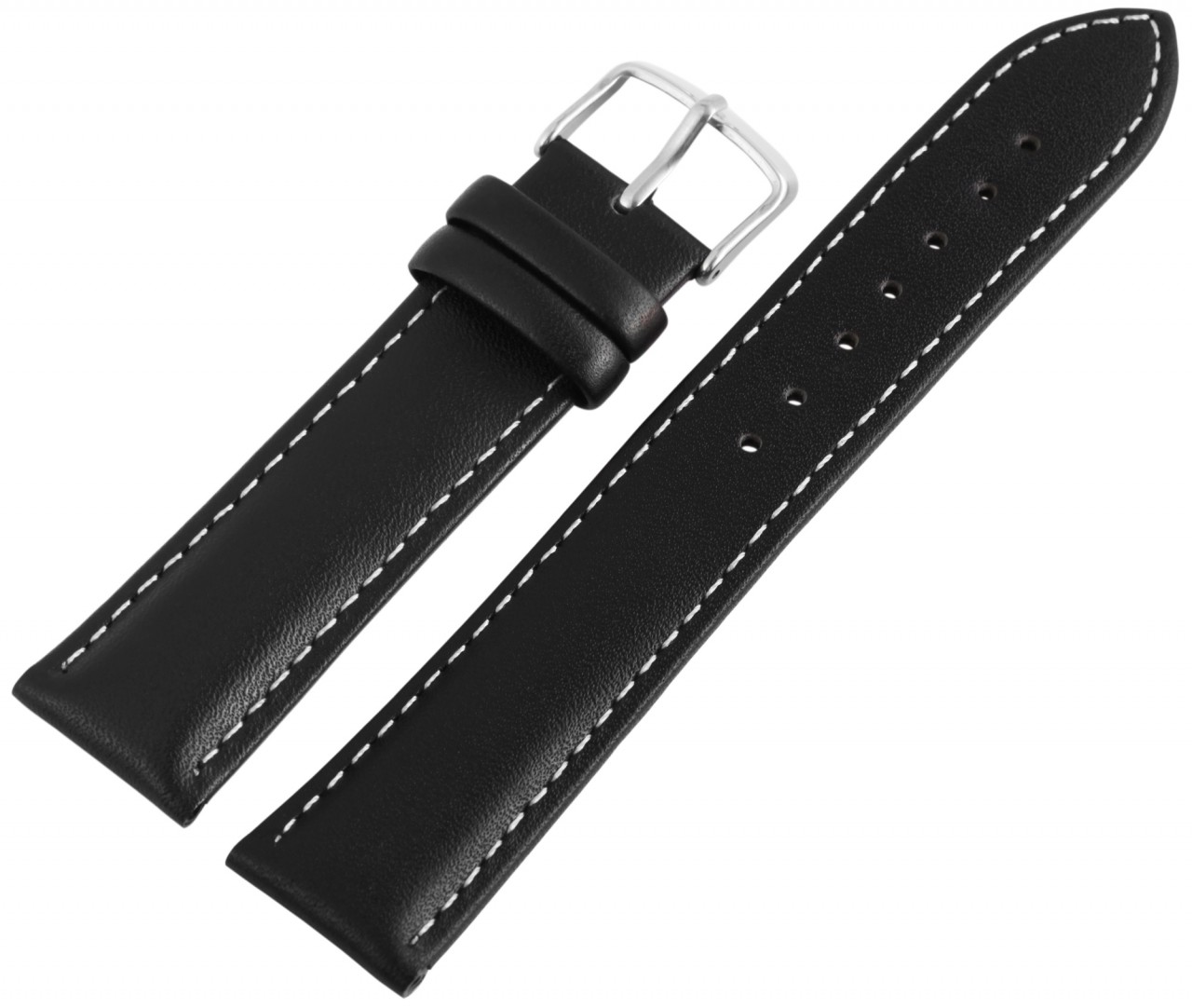 A pulseira preta em pele genuína,  é levemente acolchoada para ter aproximadamente 4 mm de altura. Tem superfície lisa e costurada com costura branca na parte externa. O comprimento total da banda está entre 19 cm e 21,5 cm. O comprimento total depende da largura do terminal. A alça do fecho é 2 mm mais estreita que a largura da alça porque a faixa é estreitamente estreita. Uma fivela prateada é presa à alça e o primeiro laço é costurado.
