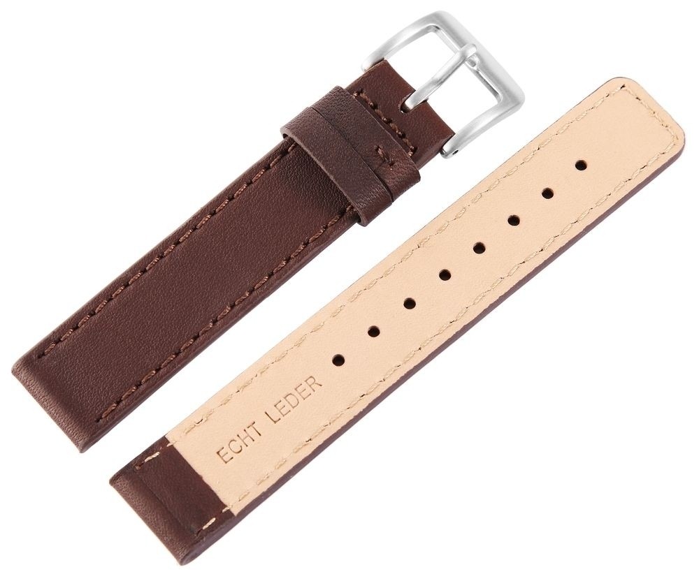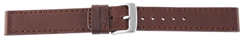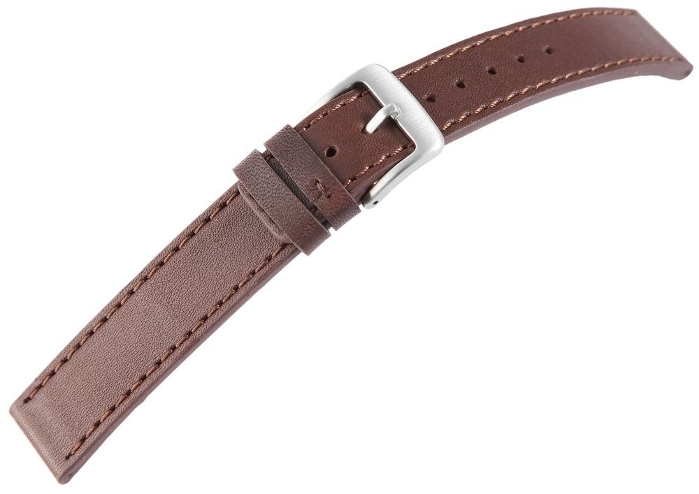 Pulseira em couro legítimo com fecho em espinho prateado. A pulseira tem duas presilhas e é decorada com costura preta.