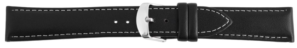 A pulseira preta em pele genuína, é levemente acolchoada para ter aproximadamente 4 mm de altura. Tem superfície lisa e costurada com costura branca na parte externa. O comprimento total da banda está entre 19 cm e 21,5 cm. O comprimento total depende da largura do terminal. A alça do fecho é 2 mm mais estreita que a largura da alça porque a faixa é estreitamente estreita. Uma fivela prateada é presa à alça e o primeiro laço é costurado.