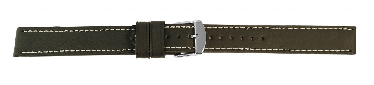 Pulseira básica de couro genuíno em preto decorada com costura branca. A pulseira tem uma fivela prateada e duas presilhas. A parte do furo afunila até uma ponta no final. As pulseiras são em XL e, portanto, também são adequadas para pulsos maiores