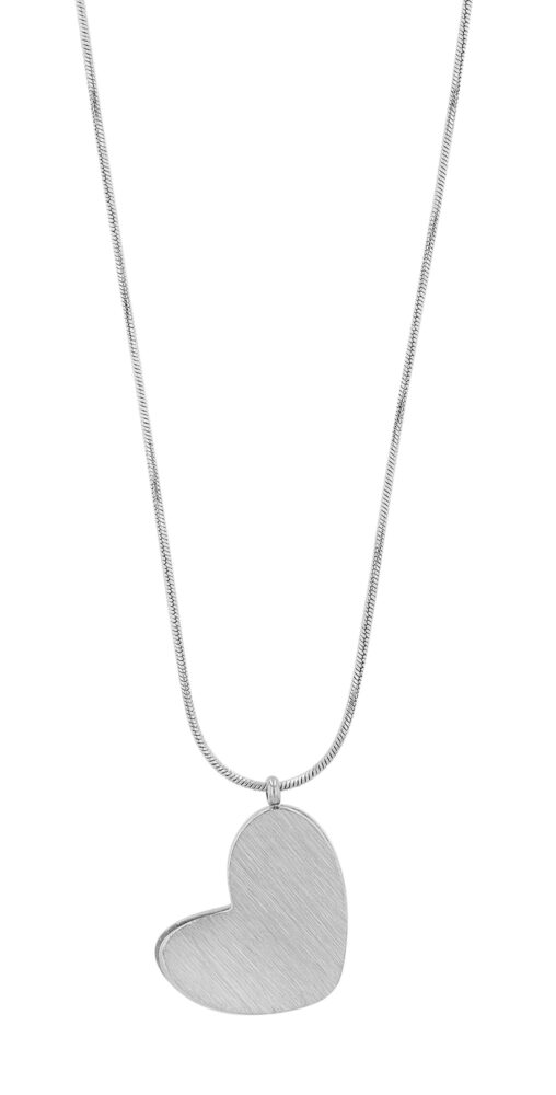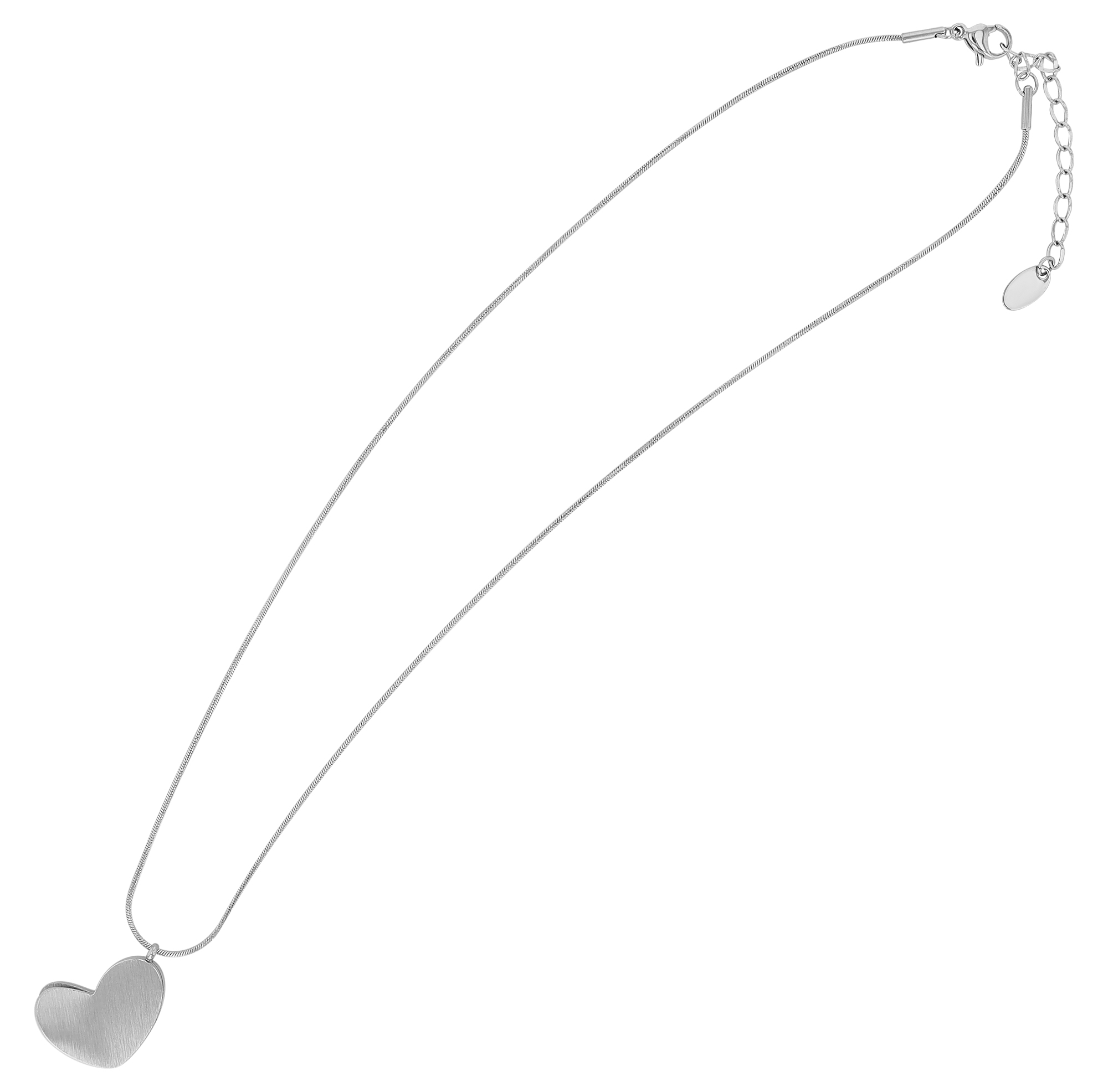 Esta requintada corrente em aço inoxidável faz uma declaração moderna e expressiva com o seu extraordinário pendente em forma de coração. A corrente é feita de aço inoxidável resistente e está disponível em prateado, para um look clássico e intemporal. Com um comprimento de 42,5 cm e um prolongamento adicional de 5 cm, a corrente pode ser ajustada individualmente e combinada na perfeição. O pingente em forma de coração (23 x 18 x 6 mm) impressiona pelo seu design único. O pingente é aberto de um lado e tem uma superfície escovada fina.