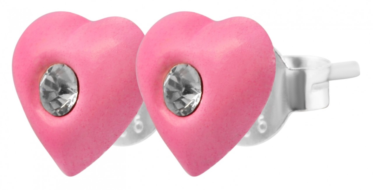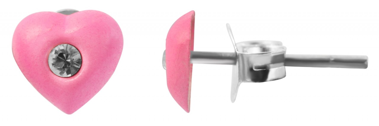 Os lindos brincos infantis em formato de pequenos corações são feitos de prata esterlina 925 e revestidos com tinta epóxi. Uma pedra brilhante de similite é habilmente colocada no meio, completando o design. Os brincos podem ser fechados com um parafuso borboleta de prata verdadeira, que evita que caiam e podem ser colocados e retirados com facilidade. As dimensões dos brincos são comprimento e largura de 6 mm e espessura de 2 mm. Estes brincos femininos são pequenos, mas lindos e chamam a atenção.