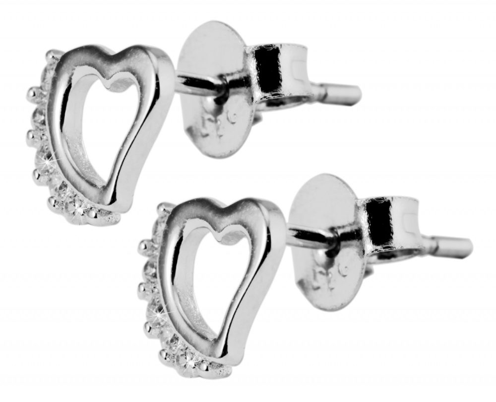 Os brincos em forma de coração são feitos de prata esterlina 925 e adicionalmente banhados a ródio. Este revestimento de ródio de alta qualidade protege as joias de manchas e também lhes confere um brilho radiante e duradouro. Os brincos de coração são abertos no meio e a metade é decorada com cinco pedras brilhantes de zircônia. Isso dá aos brincos um charme elegante. Eles podem ser fixados no orifício da orelha com um prático parafuso borboleta. O tamanho resulta de um comprimento de 6 mm, largura de 7 mm e espessura de 1 mm.