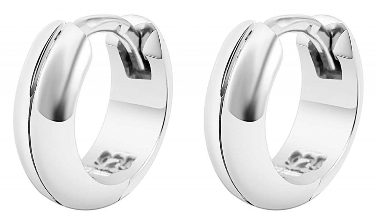 Os brincos de argola dobráveis ​​simples para mulheres são feitos de prata esterlina 925. Todos os brincos são banhados a ródio. Isso significa que eles são cobertos com uma camada de metal precioso de alta qualidade que protege a joia de manchas. Além disso, o ródio realça o tom prateado e confere brilho perfeito. O acabamento superficial polido também contribui para isso. As bordas são arredondadas e garantem um design elegante. Os brincos de argola abrem e fecham com um prático fecho dobrável. O fecho pode ser operado facilmente e garante uma fixação segura no orifício da orelha. As dimensões resultam de um diâmetro de 9 mm, largura de 5 mm e espessura do material de 2 mm.