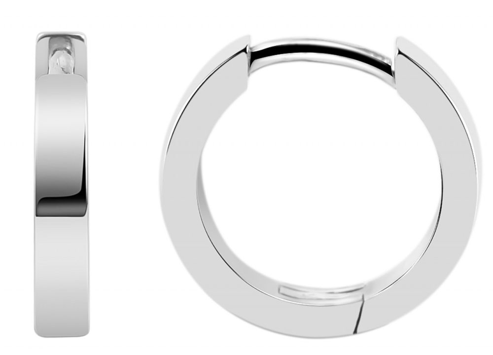 Os brincos de argola dobráveis ​​simples para mulheres são feitos de prata esterlina 925. Todos os brincos são banhados a ródio. Isso significa que eles são cobertos com uma camada de metal precioso de alta qualidade que protege a joia de manchas. Além disso, o ródio realça o tom prateado e confere brilho perfeito. O acabamento superficial polido também contribui para isso. Os brincos de argola abrem e fecham com um prático fecho dobrável. O fecho pode ser operado facilmente e garante uma fixação segura no orifício da orelha. As dimensões resultam de um diâmetro de 11 mm, largura de 3 mm…