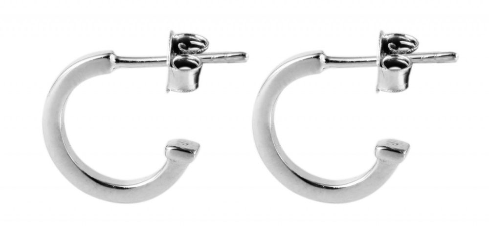 Os brincos, em forma de meia argola, são feitos em prata de lei 925 e adicionalmente banhados a ródio. Esse revestimento de alta qualidade refina o material, protege-o de manchas e também garante que a joia tenha brilho duradouro. São simples e atemporais e irradiam visualmente um grande brilho. Os brincos são fechados com um prático parafuso borboleta, o que garante que sejam confortáveis e fáceis de colocar e tirar e garantem uma fixação segura. O tamanho dos brincos é de 11,5 mm de comprimento, 2 mm de largura e 2 mm de espessura.